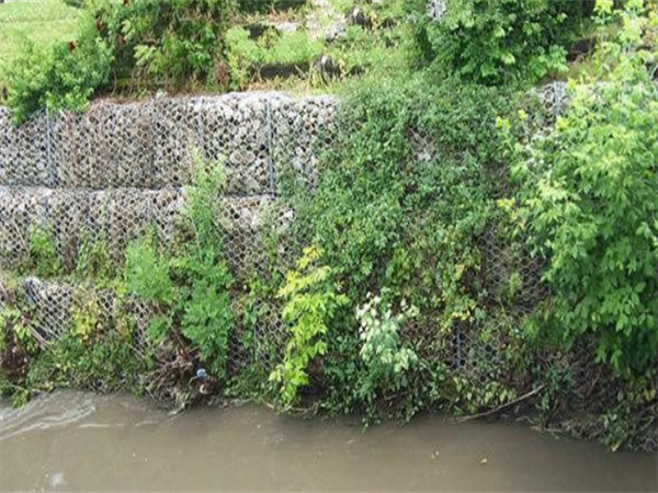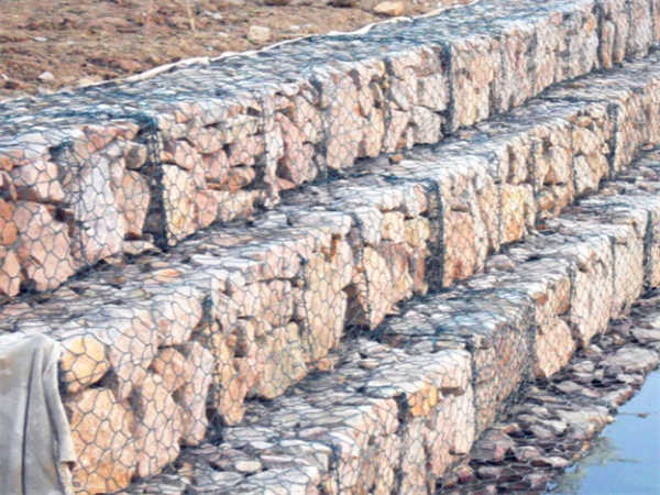 2)石笼挡墙:石笼挡墙是由厚度为0.5~1.0m的钢丝网网箱重叠而成的挡墙结构,用于取代传统混凝土和浆石成为河道护岸挡墙。