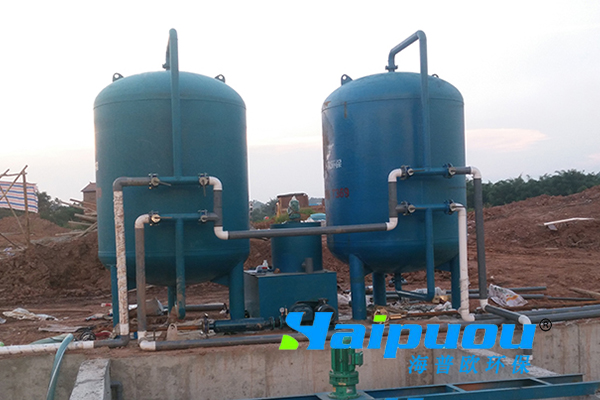 设备是压力式的,其原理是当原水自上而下通过滤料时,水中悬浮物由于吸附和机械阻流作用被滤层表面截留下来;当水流进滤层中间时,由于滤料层中的砂粒排列的更紧密,使水中微粒有更多的机会与砂粒碰撞,于是水中凝絮物、悬浮物和砂粒表面相互粘附,水中杂质截留在滤料层中,从而得到澄清的水质。经过滤后的出水悬浮物可在5毫克/升以下。