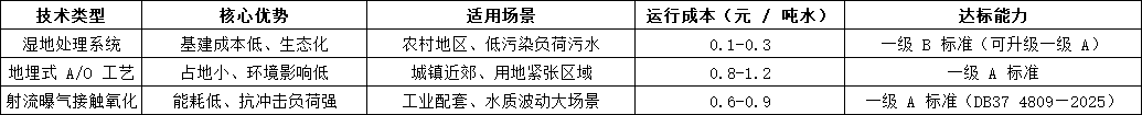 选型关键原则:北方低温区域优先选择带升温系统的工艺(如生物池加热装置),农村地区推荐湿地 + 坑塘改造模式(建设成本可降低 30%),工业污水需强化预处理段(如增设格栅与调节池)。