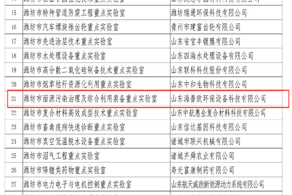 恭贺海普欧环保入选潍坊市重点实验室批准建设名单公示: